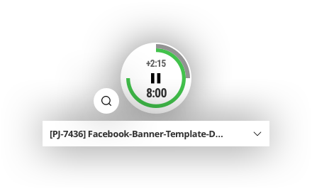 Das Widget, um die Zeiterfassung zu starten oder zu stoppen, zeigt sich im zeitgemäßen Design. Die bereits geleistete Zeit für einen Tag steht über dem Pause-Button (= Play-Button, wenn mit dem Tracking noch nicht begonnen wurde), das Tagesziel darunter. Eine graphische Darstellung der Ziel- versus geleisteten Zeit umrahmt die Funktionalität.